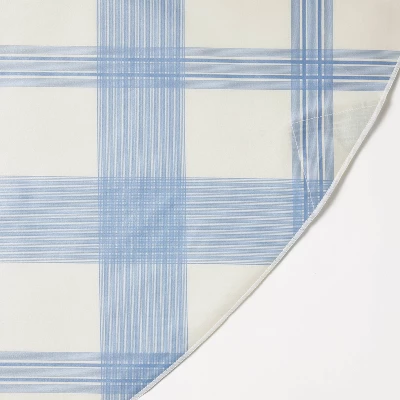 Dress your table in classic style with this 70-Inch Round Plaid Oiled Tablecloth from Threshold™ designed with Studio McGee. The round tablecloth is adorned with a blue plaid pattern on a white background, creating a lovely foundation for your tableware and decorative pieces. Made with cotton and TPU, this oiled tablecloth helps protect the table surface from scratches and spills, and it can be spot cleaned or wiped clean for easy upkeep.