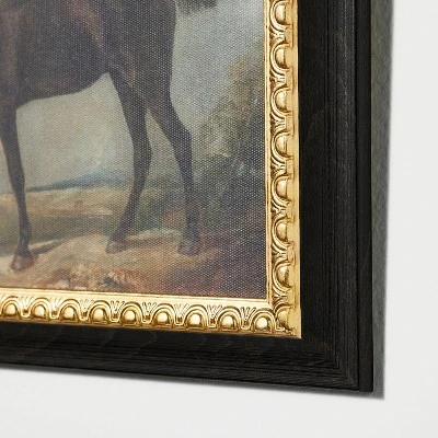 The 8″ x 10″ Stallion on Canvas Board with Ant Frame Gold/Light Brown from Threshold™ designed with Studio McGee brings modern flair to your interior. A must-have addition to any room, this framed wall art features a painting of a stallion — giving your wall a little personality without overwhelming the decor in the room. This decorative wall art is encased in a sleek wood-like frame that offers clean style. Additionally, the neutral design of this Threshold™ designed with Studio McGee 8″ x 10″ Stallion on Canvas Board with Ant Frame Gold/Light Brown seamlessly blends with any decor, making for an easy addition with plenty of flair to match.