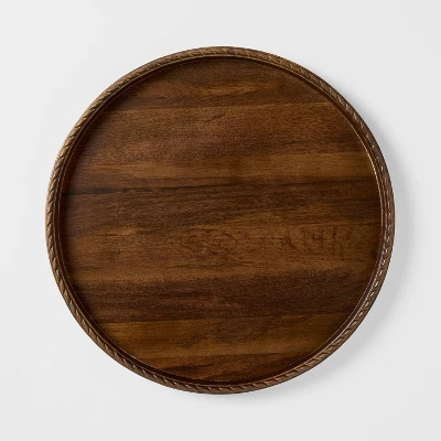 Enhance the look and feel of your space with this Braided Edge Wood Tray from Threshold™ designed with Studio McGee. Made of wood, this round tray features a braided edge that adds a classic elegance to your decor. Plus, this decorative tray is designed in a dark brown hue for an earthy feel and easy pairing with other decor accents.