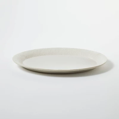 Serve guests in sophisticated style using the Stoneware Ceramic Oval Serving Platter from Threshold™ designed with Studio McGee. This cream serving platter features a woven-like texture along the rim for an elegant look. Great for everyday dining or hosting guests, this oval serving platter help provide a perfect base for your appetizers, salads and entrees. It can be tossed in the dishwasher for easy cleaning, and it’s also microwave safe for easy reheating of food. Plus, it boasts a scratch-resistant design for lasting use.